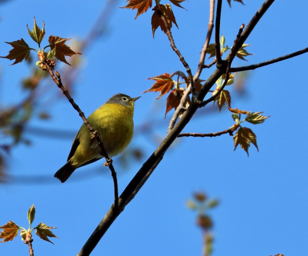 I felt skeptical. I much prefer walking around to staying in one spot to bird, but Wes had the local knowledge so I followed his lead. We walked back and we immediately began to see birds we hadn’t seen just twenty minutes ago—a Blackburnian Warbler and a couple of Magnolias. Then, I looked up.