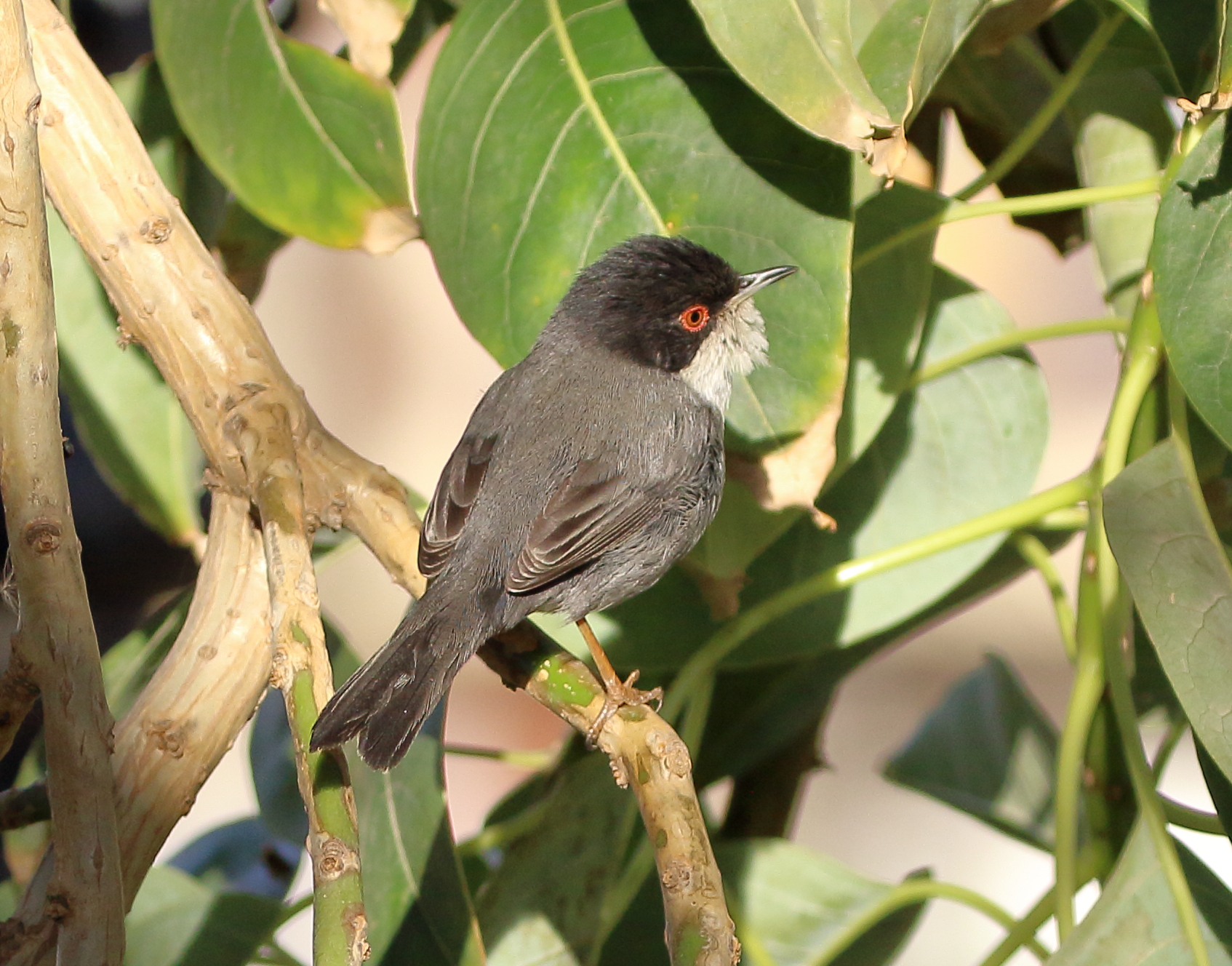 SAWA Ciutadella Barcelona 2024_02_18_9999_31 ← Previous Next → Before the trip, I spent a lot of time learning the differences between Sardinian Warblers (shown here) and Eurasian Blackcaps. Once in the field, though, it was easy to tell them apart—as long as I managed to get a decent look!